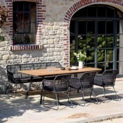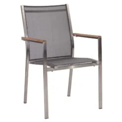 Die Sitzfläche und die Tischplatte bestehen aus Teakholz. Die robusten Metallgestelle aus Stahl garantieren eine hohe Stabilität. Optisch ansprechend ist die Farbgebung der Gestelle in Anthrazit. Die Farbgebung der Sitzfläche ist Natur. Passend zum Gesamtbild des Gartenmöbel-Sets begeistert die Tischplatte mit ihrer Farbgebung in Teak Natur. Die rechteckige Form ermöglicht es Ihnen, den Tisch in Ecken und an Häuserwänden platzsparend einzusetzen.