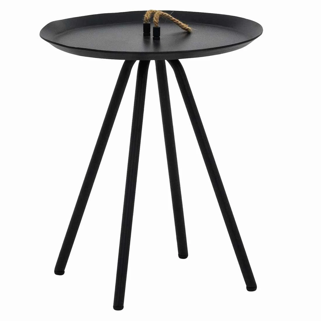 Der Beistelltisch ist komplett aus Aluminium gefertigt und gibt so ein charmantes, einheitliches Bild auf der Terrasse ab. Farblich sind Gestell und Tischplatte einheitlich gestaltet und begeistern in Schwarz. Als klassische Design-Komponente fungiert das geradlinige Vierfußgestell. Der Beistelltisch ist in klassisch rund gefertigt.