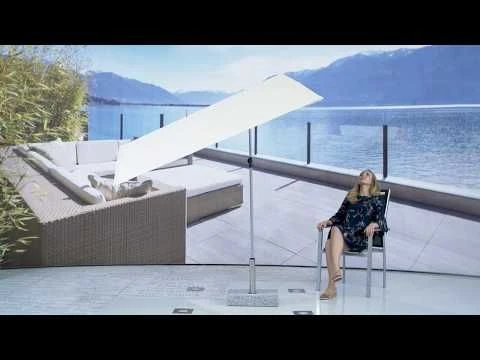 Vielseitig einsetzbar, da der Schirm um 360° gedreht, in der Höhe verstellt oder zur Seite gekippt oder verschoben werden kann.