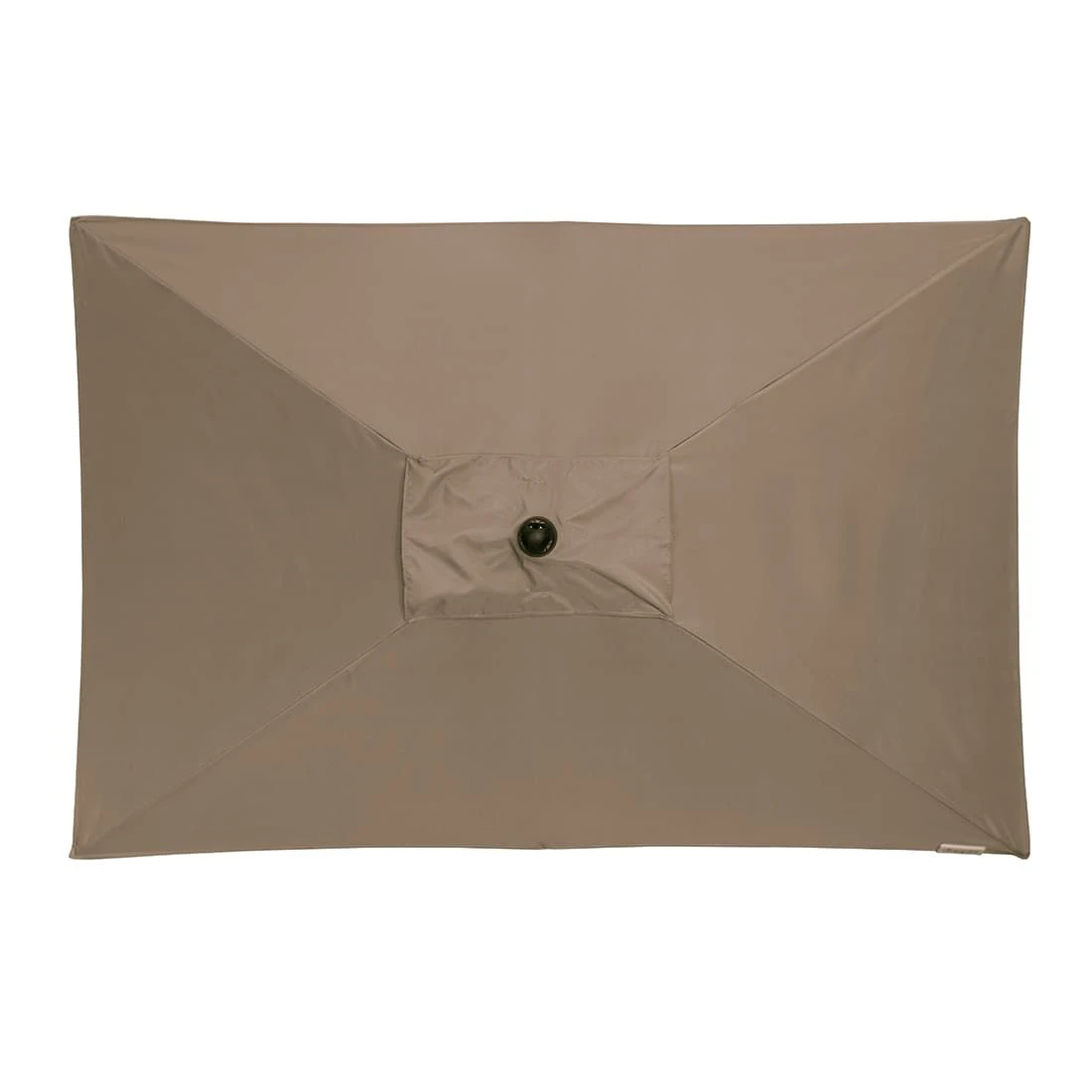 Der Bezug des Schirms besteht aus witterungsbeständigem Polyestergewebe mit einem Gewicht von 180g/m². Das Polyester ist wasserabweisend und besitzt einen UV-Schutzfaktor von 50+. Der Bezug kann zur leichteren Reinigung (Handwäsche) abgenommen werden.
