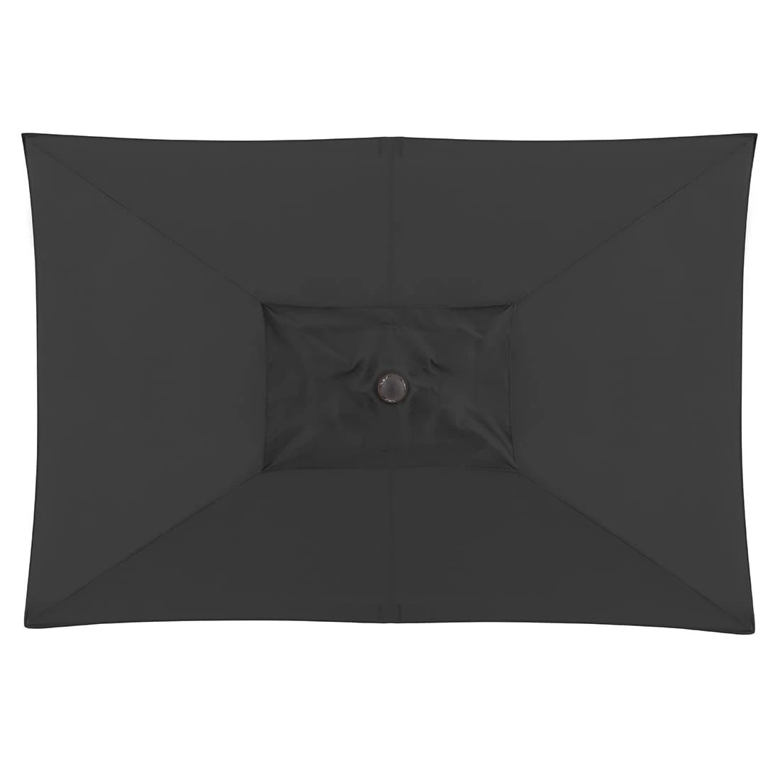 Der Bezug des Schirms besteht aus witterungsbeständigem Polyestergewebe mit einem Gewicht von 180g/m². Das Polyester ist wasserabweisend und besitzt einen UV-Schutzfaktor von 50+. Der Bezug kann zur leichteren Reinigung (Handwäsche) abgenommen werden.