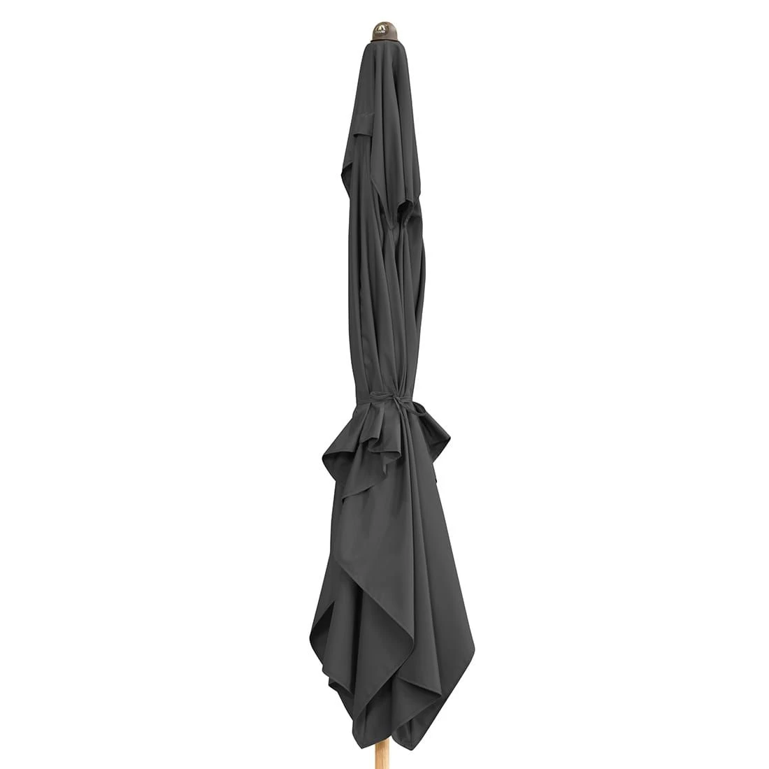 Die Neigung des Schirmdaches erfolgt per Kurbel. Nach Öffnen des Schirmdachs kann durch Weiterdrehen mittels der Kurbel die Dachneigung stufenlos eingestellt werden.