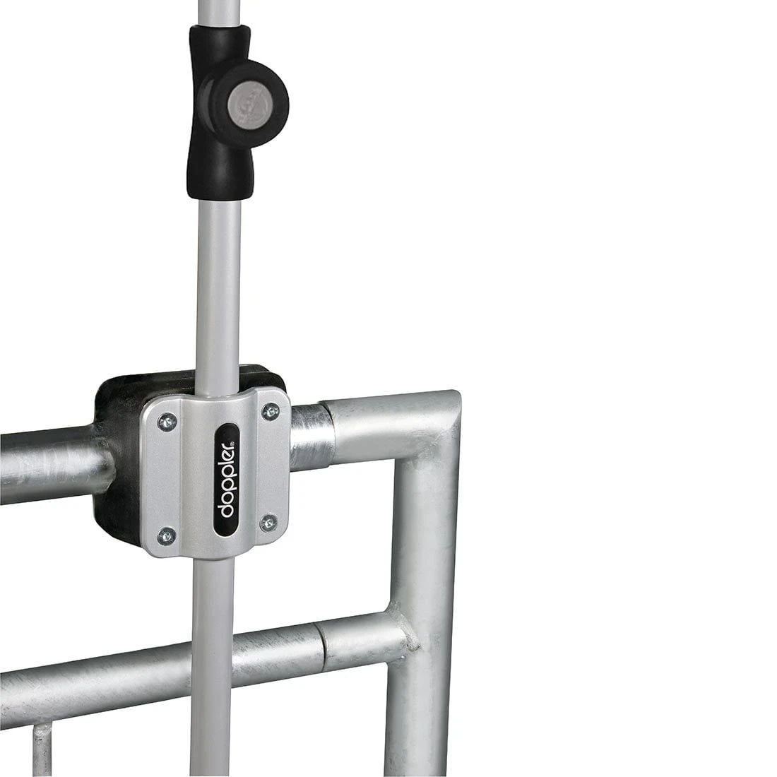 Sicherer Halt und einfache Montage ist mit dieser Balkonfixierung gewährleistet. Nur für Geländer mit Rundrohren von 33 bis max. 48mm einsetzbar.