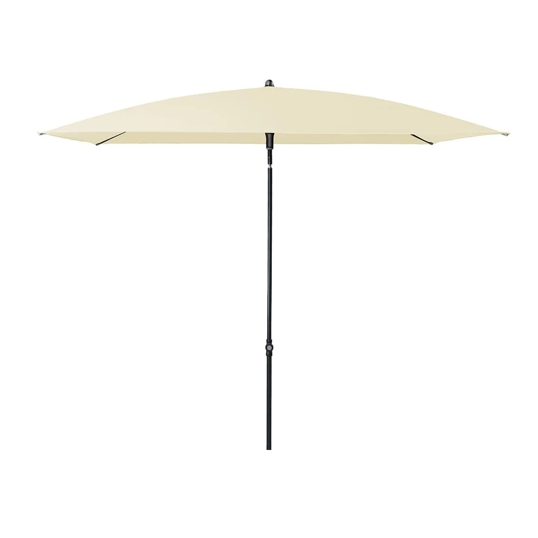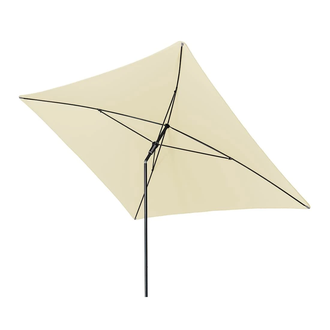 Mithilfe eines rutschfesten Schiebers mit Druckknopf, sowie dem Handrad für stufenloses Höhenverstellen ist ein müheloses Bedienen gewährleistet. Der Bezug ist für diese Schirmgröße ohne Volant versehen und besteht aus fleckschutzimprägniertem, wasserdichten und verrottungsfreiem Polyester-Spezialgewebe. Außerdem ist der Bezug wetterbeständig, hat eine hohe Lichtechtheit und einen starken UV-Schutz von 80.