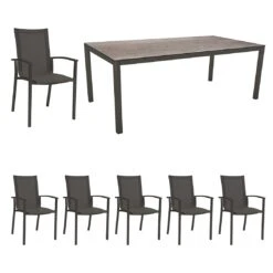 Stern Evoee Gartenmöbel-Set 7-tlg. Tisch 200x100cm Anthrazit/Karbon