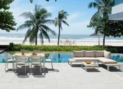 LifestyleGarden Portals Gartentisch 209x105cm Aluminium/Teak Korallensand-Matt/Teak