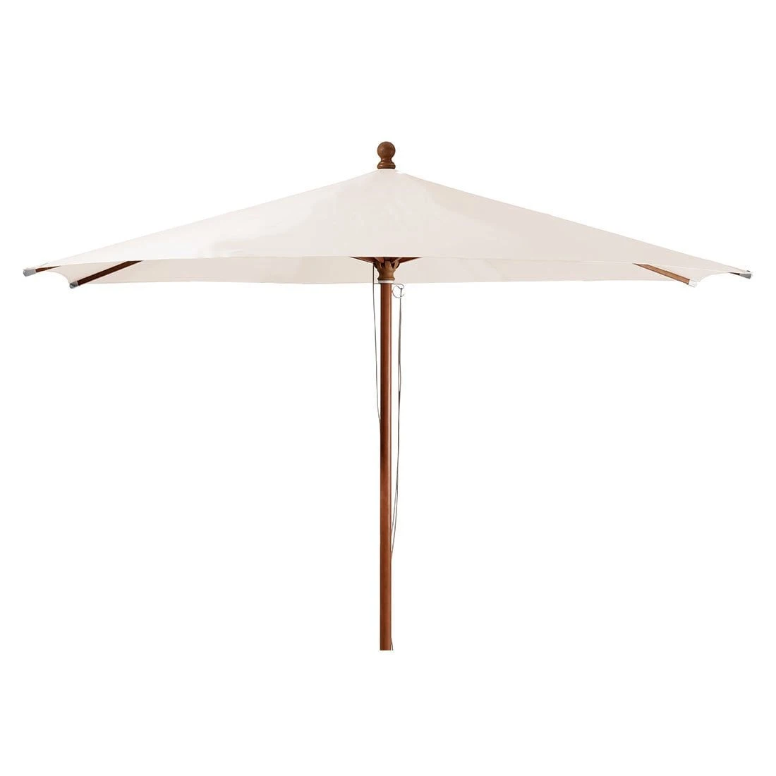 Material und Technik: 8-teilig aus Hartholz (rötliche Färbung), Mast durchgehend Ø 48 mm, mit einfachem Flaschenzug für leichtes Öffnen, Schirmdach nicht neigbar.