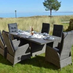 Als klassische Design-Komponente fungiert das geradlinige Vierfußgestell. An diesem Tischgestell finden 6 Personen Platz. Damit bietet dieses Modell genügend Sitzplätze für die ganze Familie – egal ob zum Frühstück, Mittag- oder Abendessen.