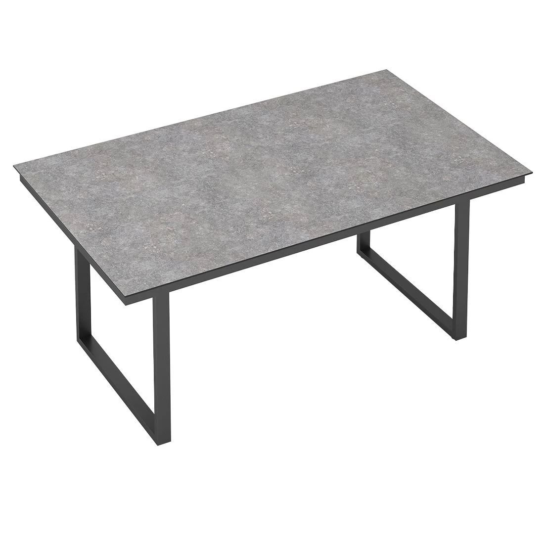 Als Gestellmaterial dient qualitativ hochwertiges Aluminium. Das Gestell besticht mit seinen attraktiven Kufen. Die massive Tischplatte aus praktischem HPL-Kunststoffverbund ist im Besonderen für den Einsatz unter freiem Himmel und das Grillen draußen bestens geeignet. Farblich ist die Tischplatte in einem schönen Kalksandstein gehalten. Der Gartentisch ist klassisch rechteckig gestaltet.