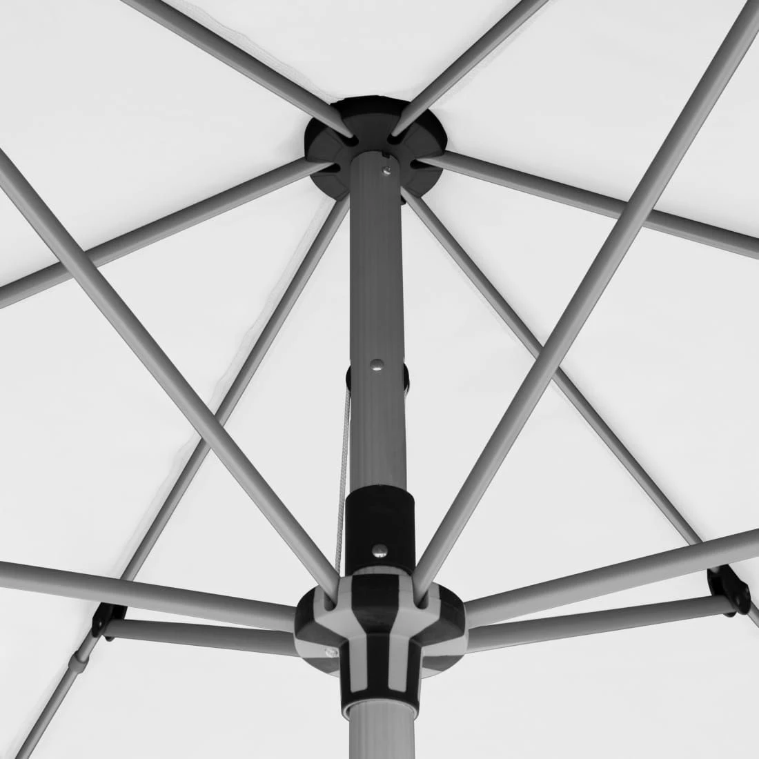 Der Sonnenschirm Silver bietet eine Höhenverstellung mittels zusätzlichen Unterstock. Die Stoffe sind von hoher Lichtechtheit, fleckschutzimprägniert, wasserabweisend und für Handwäsche geeignet. Eine hochwertige und leichtgängie Kurbel sorgt für einfachste Bedienung. Der Schirmbezug ist mit selbstspannenden Elementen an den Dachstreben befestigt. Die Streben sind doppelt verstärkt.