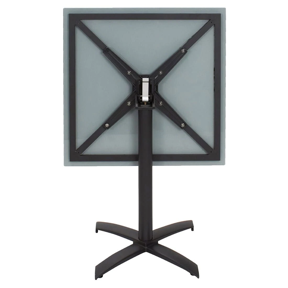 Das Gestell des attraktiven Tisches ist aus Aluminium gefertigt. Ein stabiler Unterbau und dabei gleichzeitig dekorativ ist das Säulengestell. Die Tischplatte ist aus wertigem Keramik-Glas gefertigt. Im Gegensatz zu vielen anderen Tischplattenmaterialien sind solche Platten äußerst kälte- und hitzebeständig und zählen somit zu den robustesten Tischplatten auf dem Markt. Farblich ist die Tischplatte in einem schönen Steingrau gehalten. Die Form des Klapptisches ist kompakt gehalten.