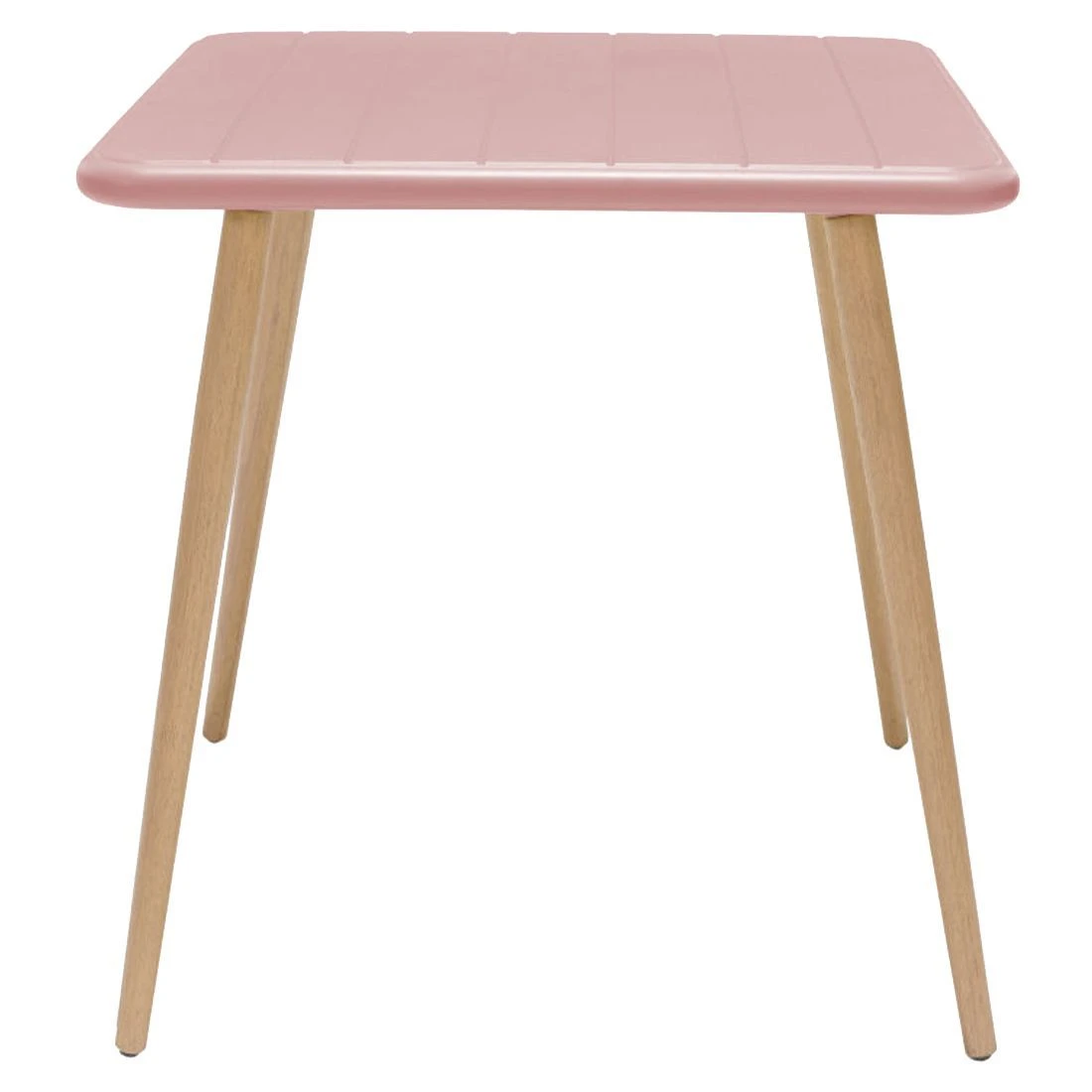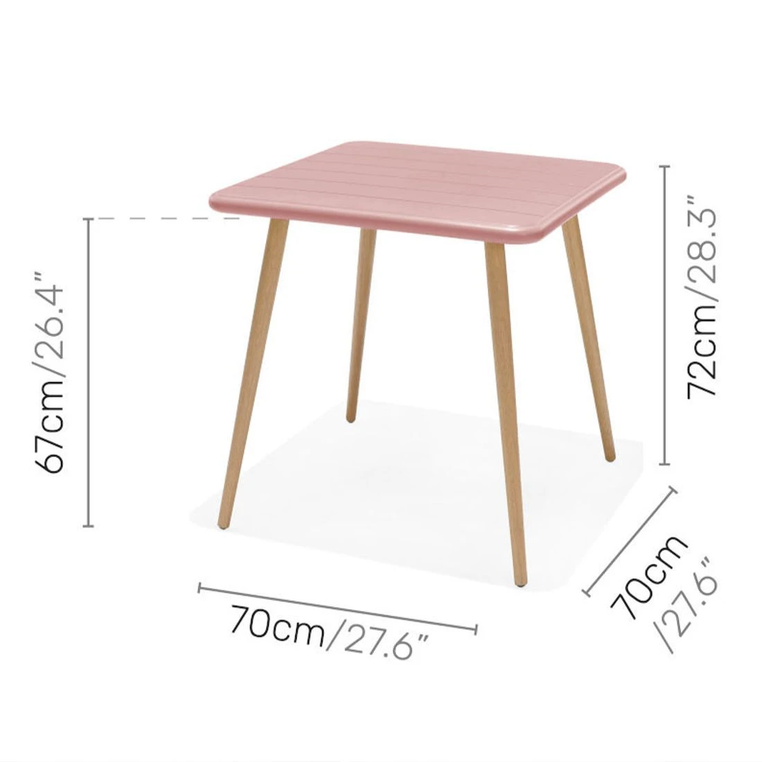 Im Preis des Sets ist bereits ein passender Tisch enthalten. Als Material für die Tischplatte wird outdoortauglicher Kunststoff ausgesucht.
