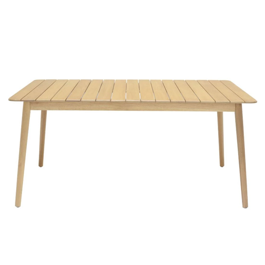 Der Gartentisch Nassau ist einheitlich gestaltet: Sowohl das Gestell als auch die Tischplatte sind aus Eukalyptusholz gefertigt. Farblich sind Gestell und Tischplatte einheitlich gestaltet und begeistern in Teak-Look. Als klassische Design-Komponente fungiert das geradlinige Vierfußgestell. Der Gartentisch ist klassisch rechteckig gestaltet.