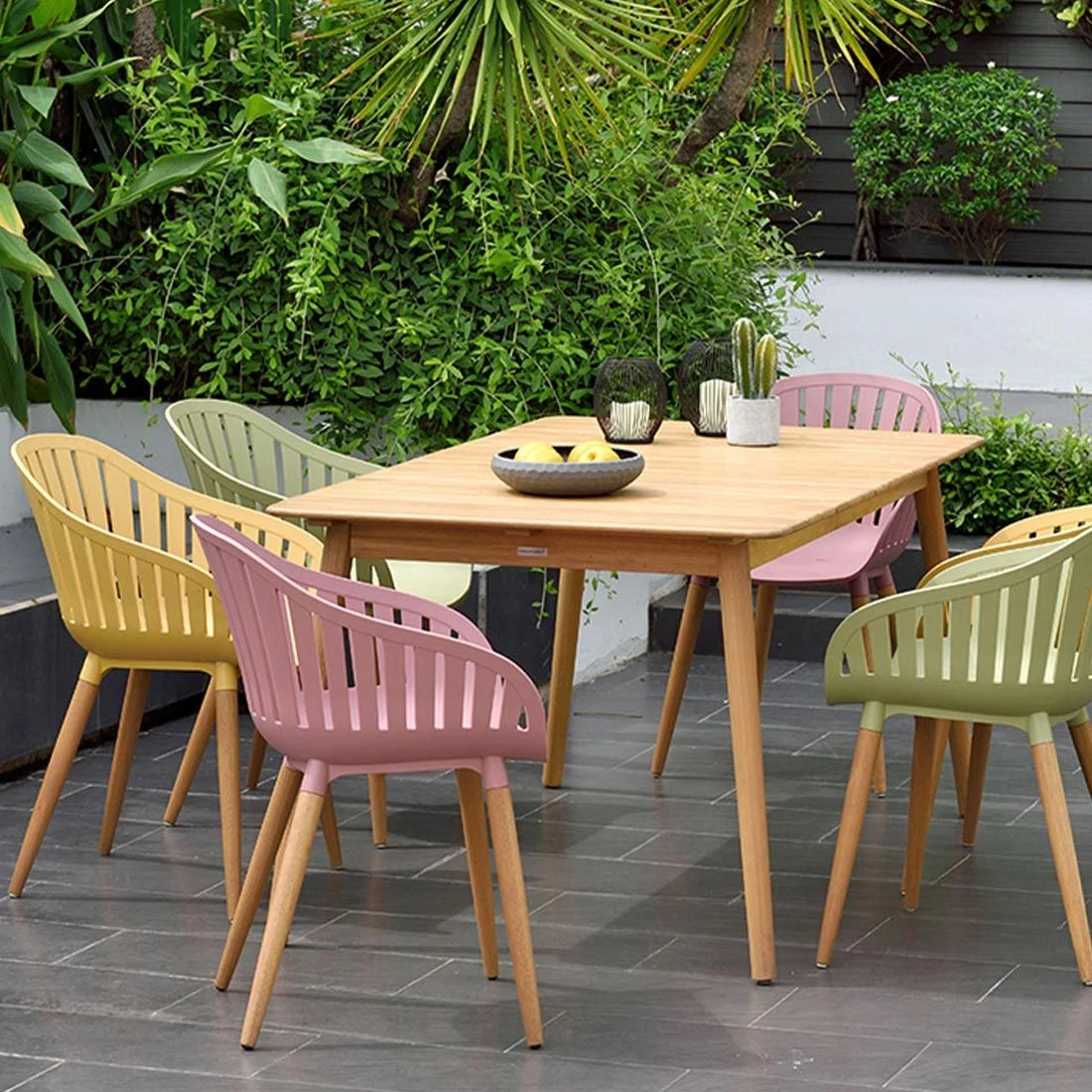 An diesem Gartentisch können bis zu 6 Personen sitzen. Genügend Platz also für die ganze Familie oder ein gemeinsames Dinner mit Freunden.