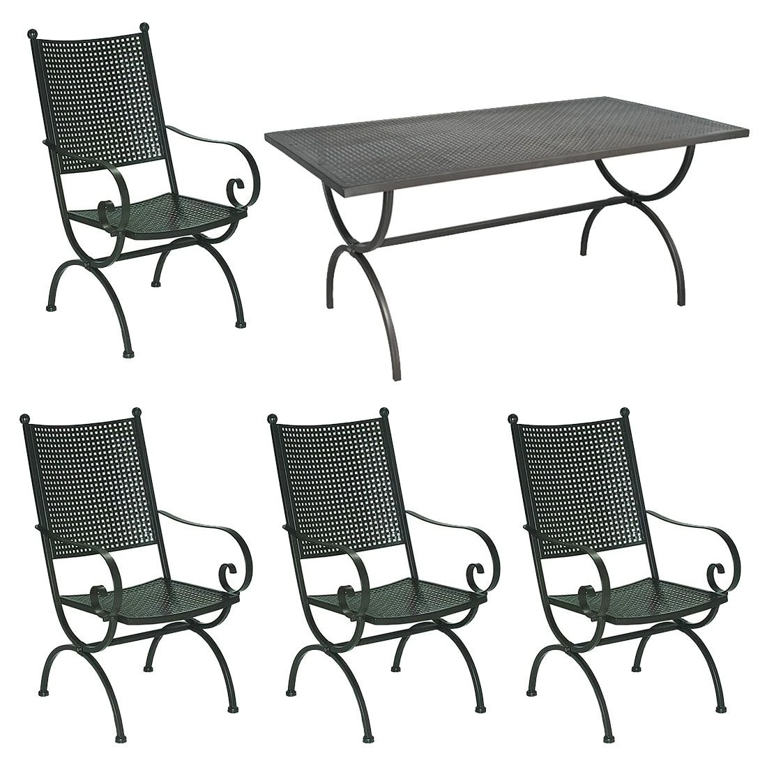 Zum besonderen Highlight wird das Gartenmöbel-Set dank des hochwertigen Schmiedeeisens. Dieses verleiht dem Gartenmöbel-Set ein verspieltes Erscheinungsbild.
