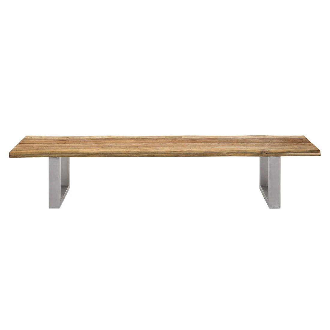 Das Gestell wird aus hochwertigem und rostfreiem Edelstahl hergestellt. Aufgrund des etwas höheren Eigengewichts, steht die Gartenbank dadurch besonders stabil und windsicher auf der Terrasse. Für eine attraktive Optik ist das Gestell im Farbton Teak Recycelt gehalten. Die Sitzfläche der Gartenbank besteht ganz natürlich aus recyceltem Teakholz. Die Sitzfläche hat eine attraktive Farbgebung in Teak.