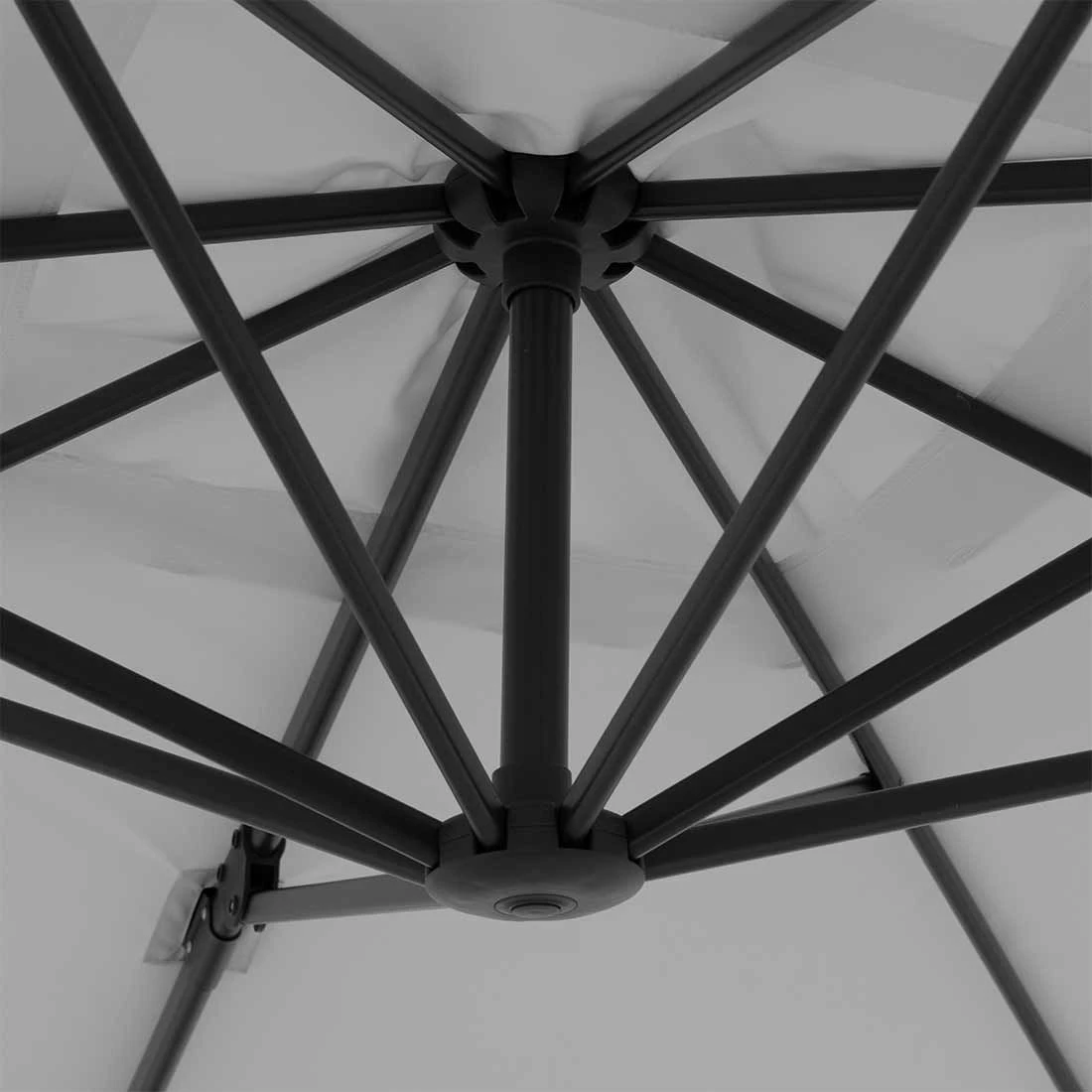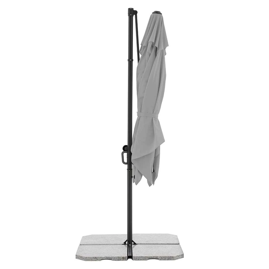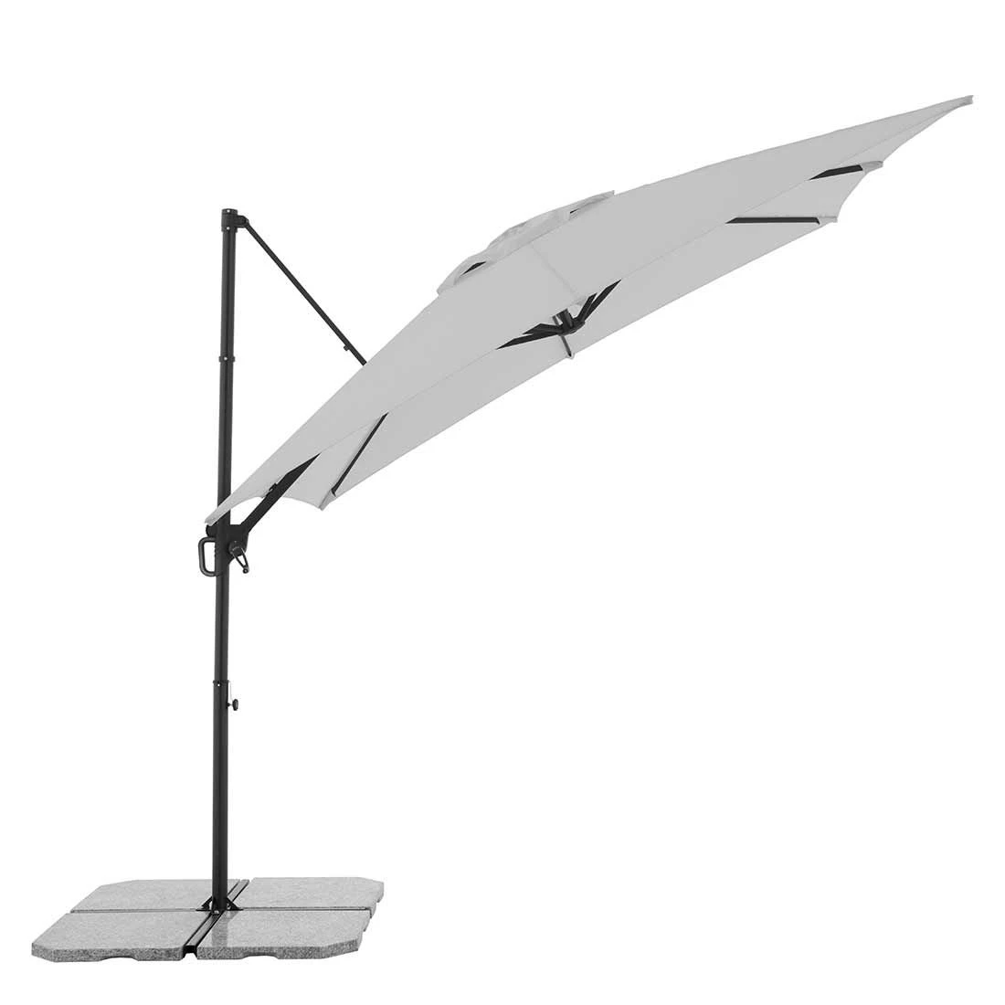 Der handliche und platzsparende Ampelschirm wird inkl. Ständerkreuz (ohne Platten) angeliefert. Der Schirm verfügt über einen guten Lichtschutzfaktor von LSF 50+. Das Schirmdach lässt sich in Richtung Mast aufstellen. Der Schirm ist drehbar und kann somit immer wieder an den aktuellen Sonnenstand angepasst werden.