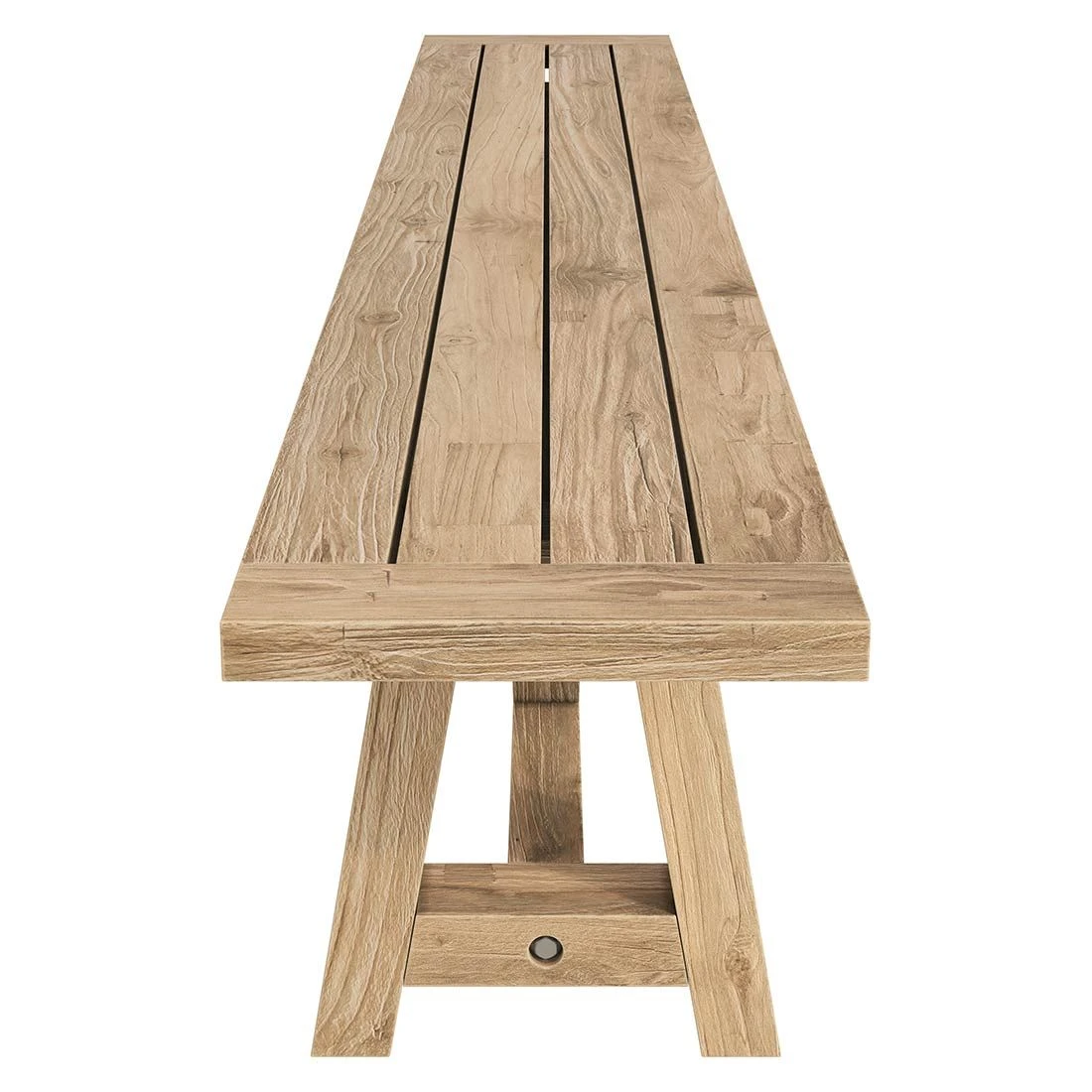 Das Gestell wird aus Teakholz gefertigt und bringt ein natürliches Flair auf Ihre Terrasse. Die Sitzfläche der Gartenbank besteht ganz natürlich aus recyceltem Teakholz. Für ein perfekt stimmiges Gesamtbild sorgt die einheitliche Farbgebung in stilvollem Teak Recycelt.