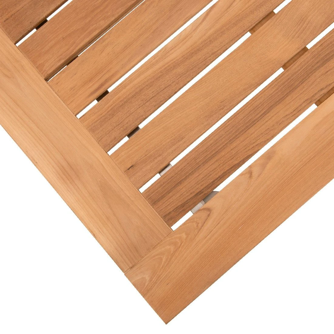 Zum Set gehört auch ein passender Tisch. Dessen Tischplatte ist aus Teakholz (Natur) gefertigt und rundet das stimmige Gesamtbild des Gartenmöbel-Sets ab. Zum Lieferumfang des Sets gehört auch ein passender Tisch. Als Material für die Tischplatte wird das wertvolle Hartholz Teak gewählt. Die Maserung dieses Holzes und der helle Farbton integrieren sich sehr gut in das Gesamtbild eines jeden Gartens und verbreiten eine einzigartige natürliche Atmosphäre. Die Form des Tisches ist klassisch rechteckig gehalten.