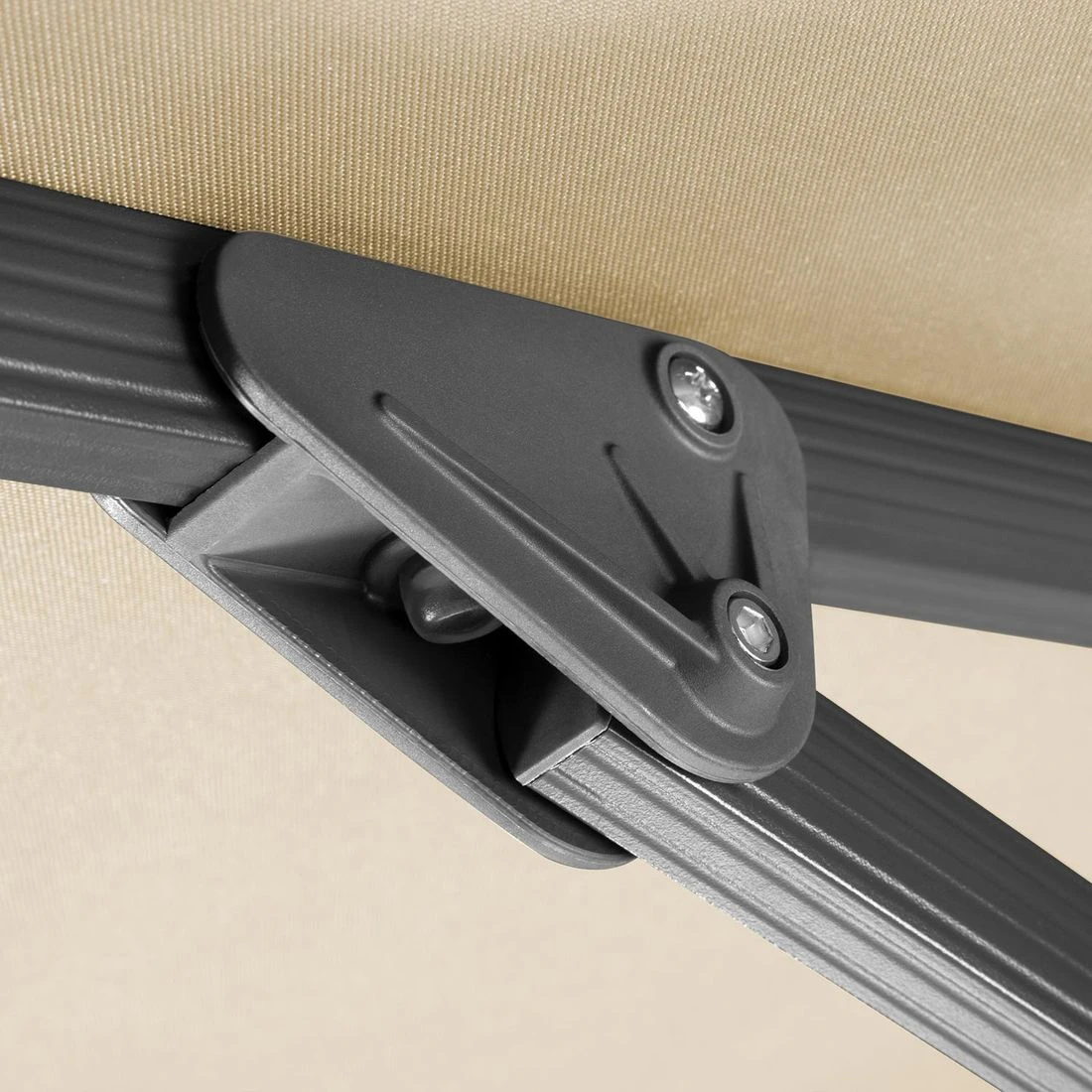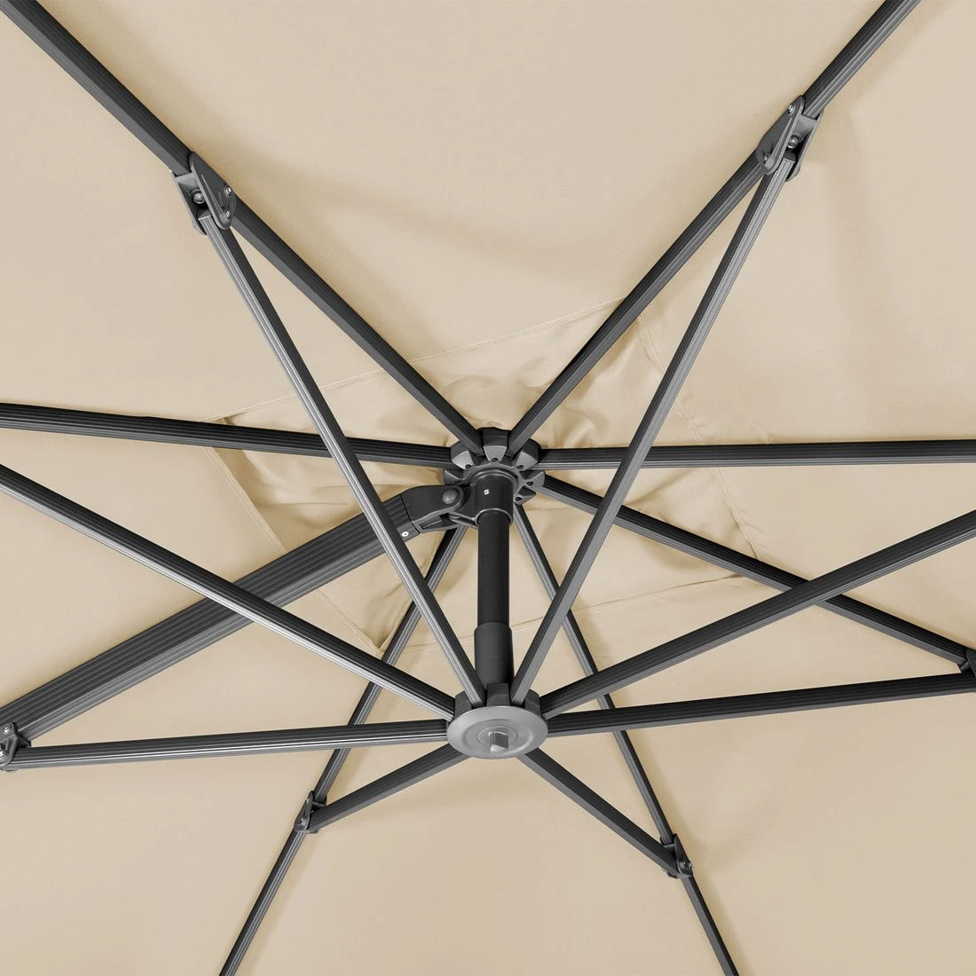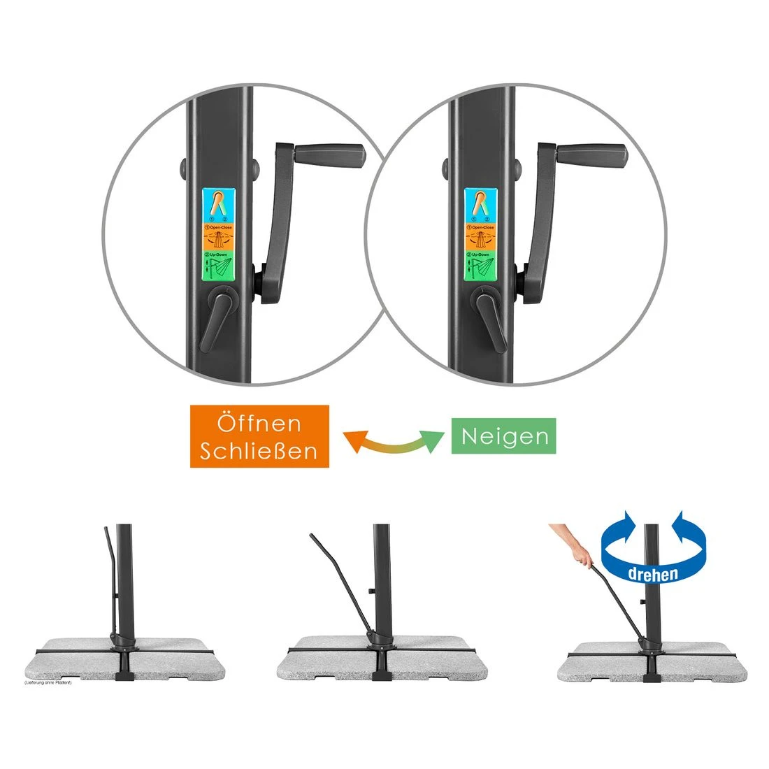 Bei diesem Sonnenschirm-Modell ist das Schirmdach in Richtung Schirmmast aufstellbar und bequem per integriertem Handhebel drehbar. Im Schirmdach ist eine Windauslassöffnung eingearbeitet.