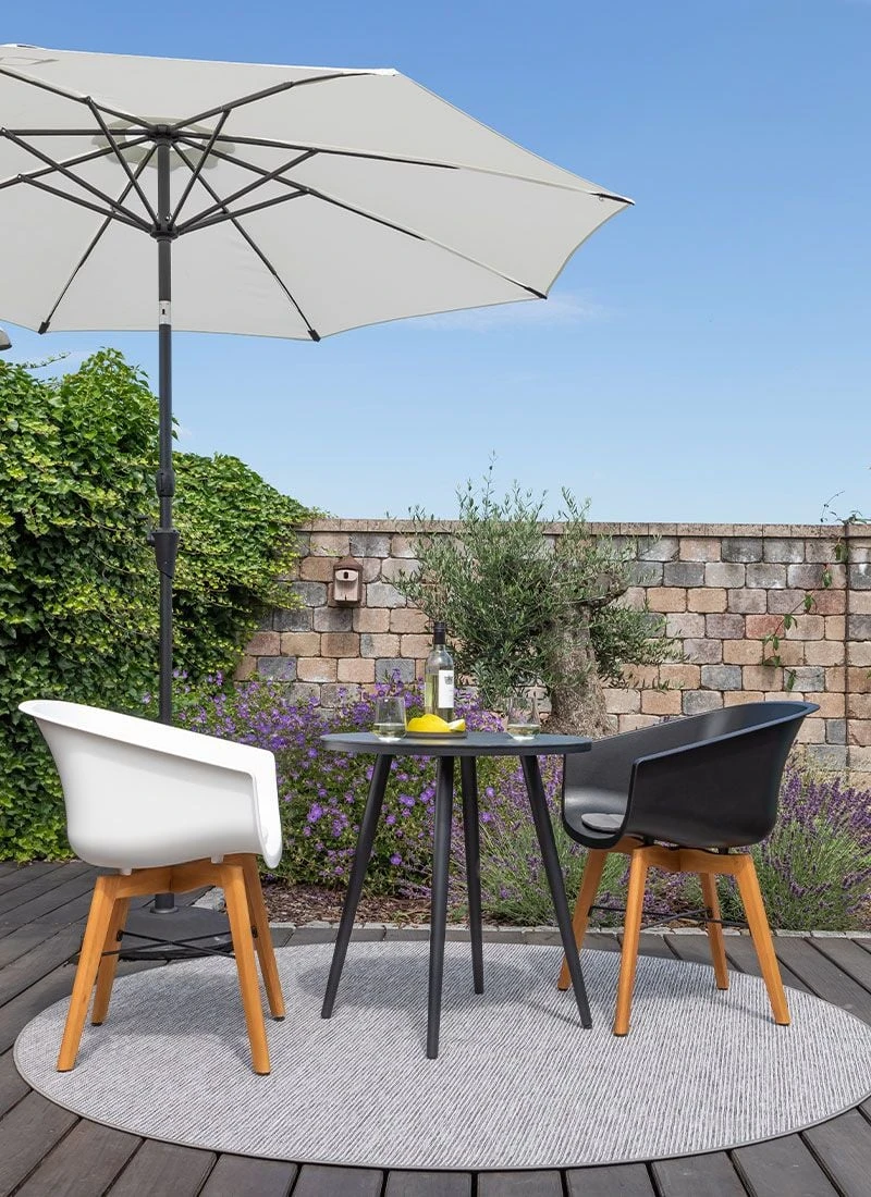 Der optimale Schattenspender für Garten, Terrasse und Balkon für heiße Sommertage ist der Sonnenschirm Savaneta aus der SCHÖNER WOHNEN-Kollektion in der Größe 300×300 cm.