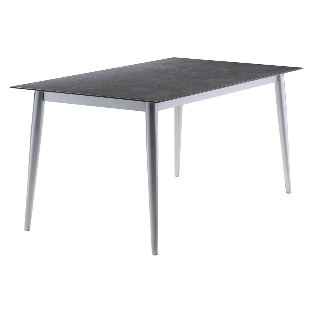 Als Material des Gestells dient qualitativ hochwertiges Aluminium. Optisch ist das Gestell in Graphit gehalten. Die Polytec-Tischplatte ist nicht nur ein optischer Hingucker, sondern besitzt auch beste Materialeigenschaften für Draußen. Die Platte ist wetter-, kälte- und kratzfest und damit der perfekte Begleiter für Ihren Outdoor-Bereich. Für ein stimmiges Gesamtbild erscheint die Platte in der Farbe Schiefer-Anthrazit. Das Design des Gartentisches ist klassisch rechteckig gehalten.