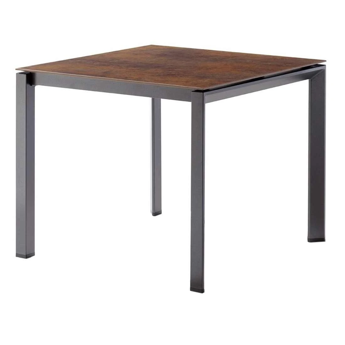 Das Gestell des leichten Tisches ist aus Aluminium hergestellt. Das klassische Vierfuß-Gestell garantiert Ihnen maximale Beinfreiheit. Die Polytec-Tischplatte ist nicht nur ein optischer Hingucker, sondern besitzt auch beste Materialeigenschaften für Draußen. Die Platte ist wetter-, kälte- und kratzfest und damit der perfekte Begleiter für Ihren Outdoor-Bereich. Für ein elegantes Gesamtbild erscheint die Platte in der Farbe Bronze. Die Form des Gartentisches ist kompakt quadratisch gehalten.