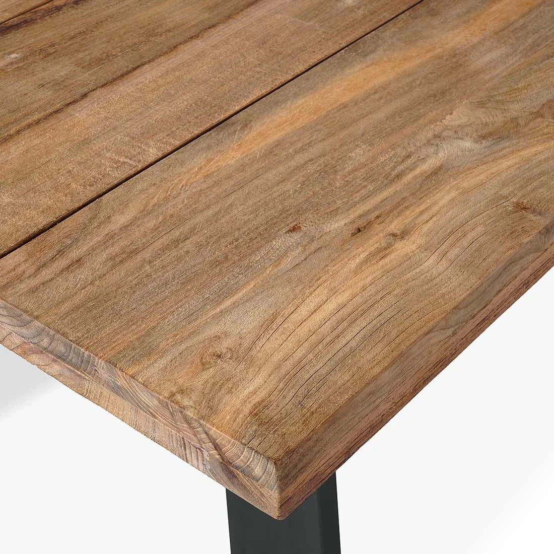 Im Set enthalten ist auch ein passender Tisch. Die Tischplatte ist aus natürlichem Teak gefertigt. Durch den sehr hohen natürlichen Ölanteil, ist sie damit sehr gut vor Witterungseinflüssen geschützt. Als klassische Design-Komponente fungiert das geradlinige Vierfußgestell. Das Design des Tisches ist klassisch rechteckig gestaltet.