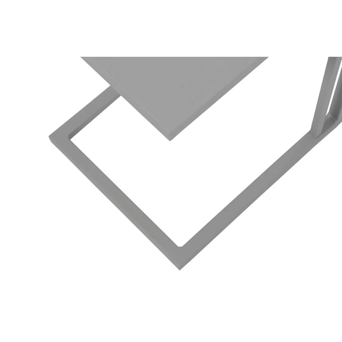Als Gestellmaterial dient qualitativ hochwertiges und leichtes Aluminium. Das Gestell besticht mit seinen attraktiven Kufen. Für die Tischplatte wird wetterfestes und pflegeleichtes Aluminium verwendet. Farblich ist die Platte in Hellgrau gehalten. Der Beistelltisch ist in seinem Design klassisch quadratisch gehalten.