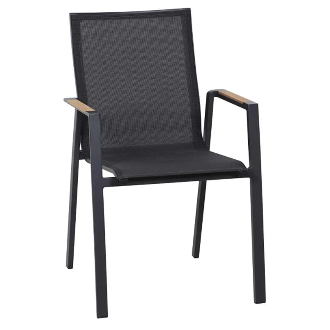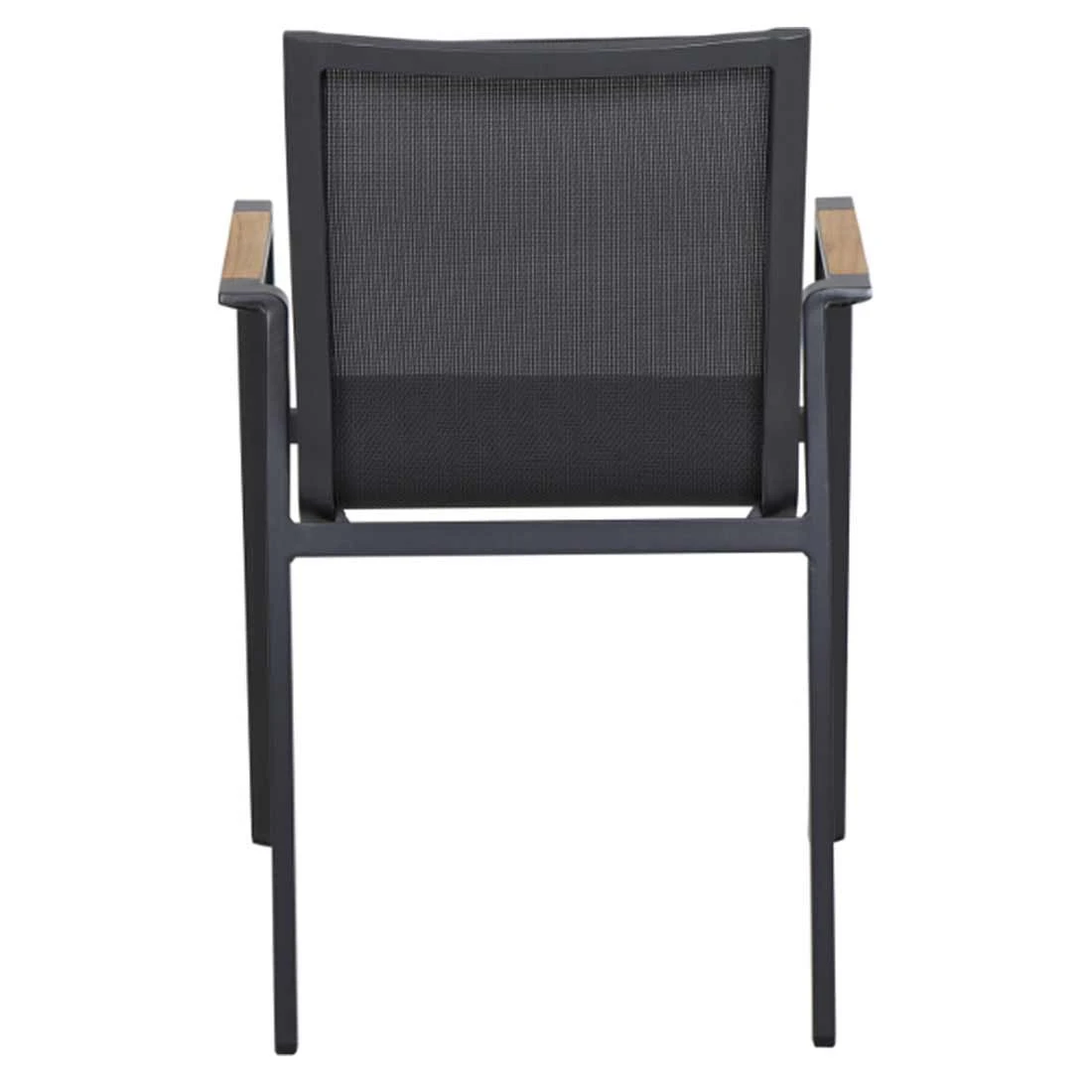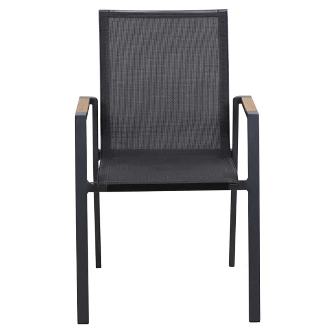 Das Gestell ist aus Aluminium gefertigt. Dadurch lassen sich die Möbel leicht von einem Standort zum nächsten transportieren und sind dennoch sehr stabil. Optisch ansprechend ist die Farbgebung der Gestelle in Anthrazit. Die Farbgebung der Sitzfläche ist Grau. Zum Lieferumfang des Sets gehört auch ein praktischer Tisch. Die Gebrauchsspuren in der Tischplatte sind Teil der Formensprache der Tischplatte. Denn diese ist aus wiederverwertetem Teak gearbeitet, das zuvor aus alten Hütten und Booten gewonnen wurde. Bei der Aufarbeitung werden dann Einkerbungen, Nagellöcher und Co. bewusst erhalten. Jede Tischplatte und damit jeder Gartentisch ist also ein Unikat. Die Tischplatte ist Natur. Als klassische Design-Komponente fungiert das geradlinige Vierfußgestell. Der Tisch ist klassisch rechteckig gestaltet.