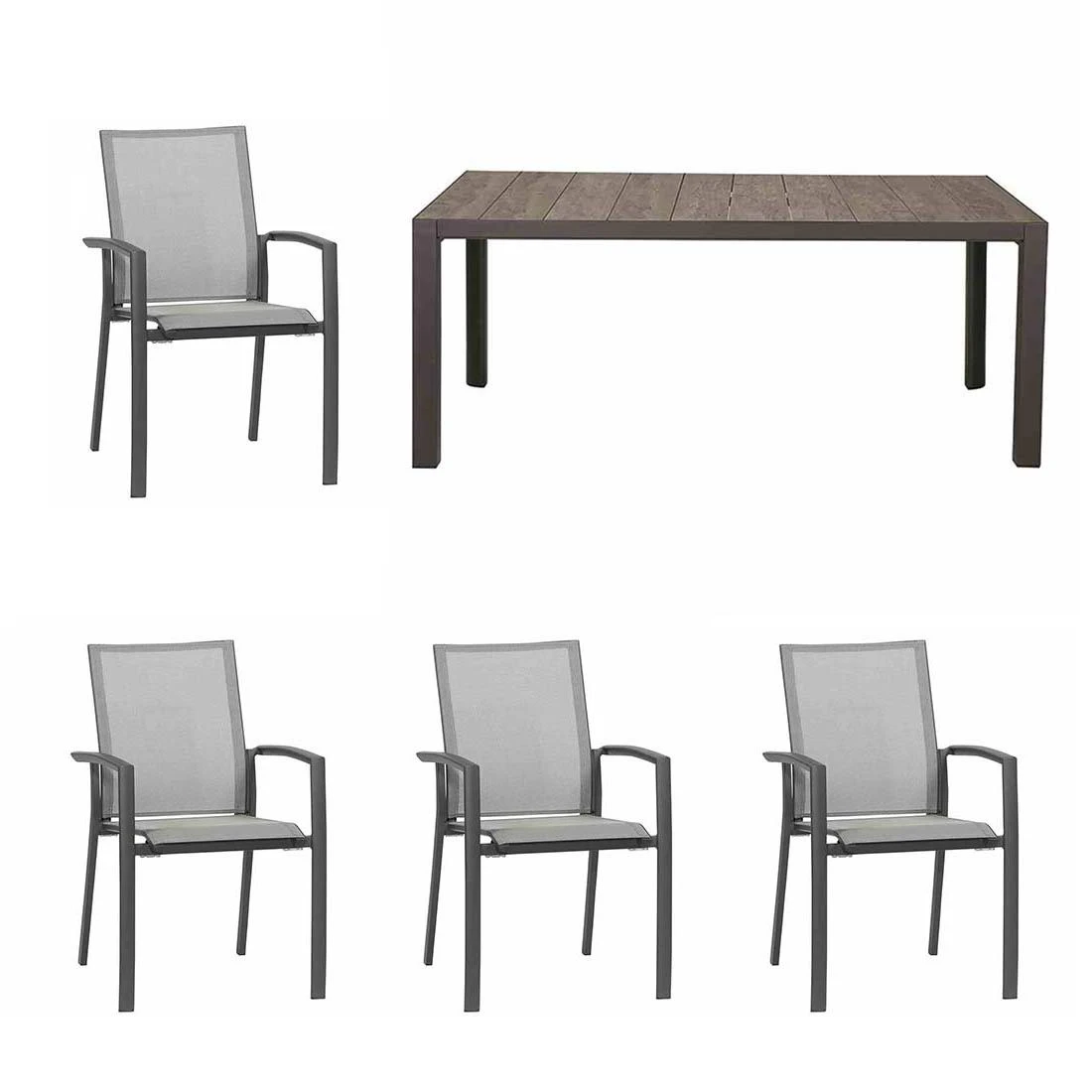 Das Gestell ist aus Aluminium gefertigt. Dadurch lassen sich die Möbel leicht von einem Standort zum nächsten transportieren und sind dennoch sehr stabil. Ein weiterer Pluspunkt der Sitzmöbel ist die Bespannung der Sitzflächen mit Textilene in der Farbe Charcoal. Dieses Material zeichnet sich durch eine hohe Robustheit gegenüber Hitze und Frost aus und ist leicht zu reinigen.