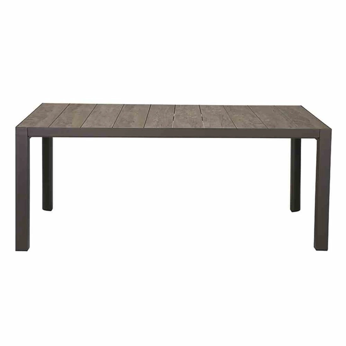 Im Lieferumfang des Sets ist auch ein passender Tisch enthalten. Für die Tischplatte wird als Material hochwertiges Keramik gewählt, welches eine zeitlose Atmosphäre auf der Terrasse und im Garten schafft. Die rechteckige Form ermöglicht es Ihnen, den Tisch in Ecken und an Häuserwänden platzsparend einzusetzen.