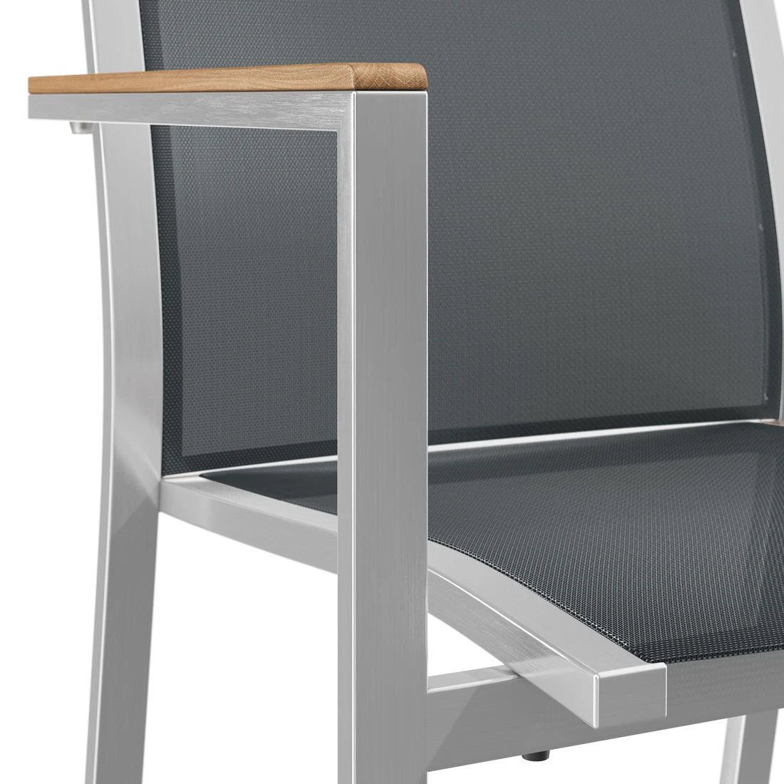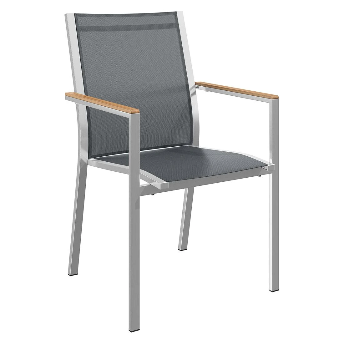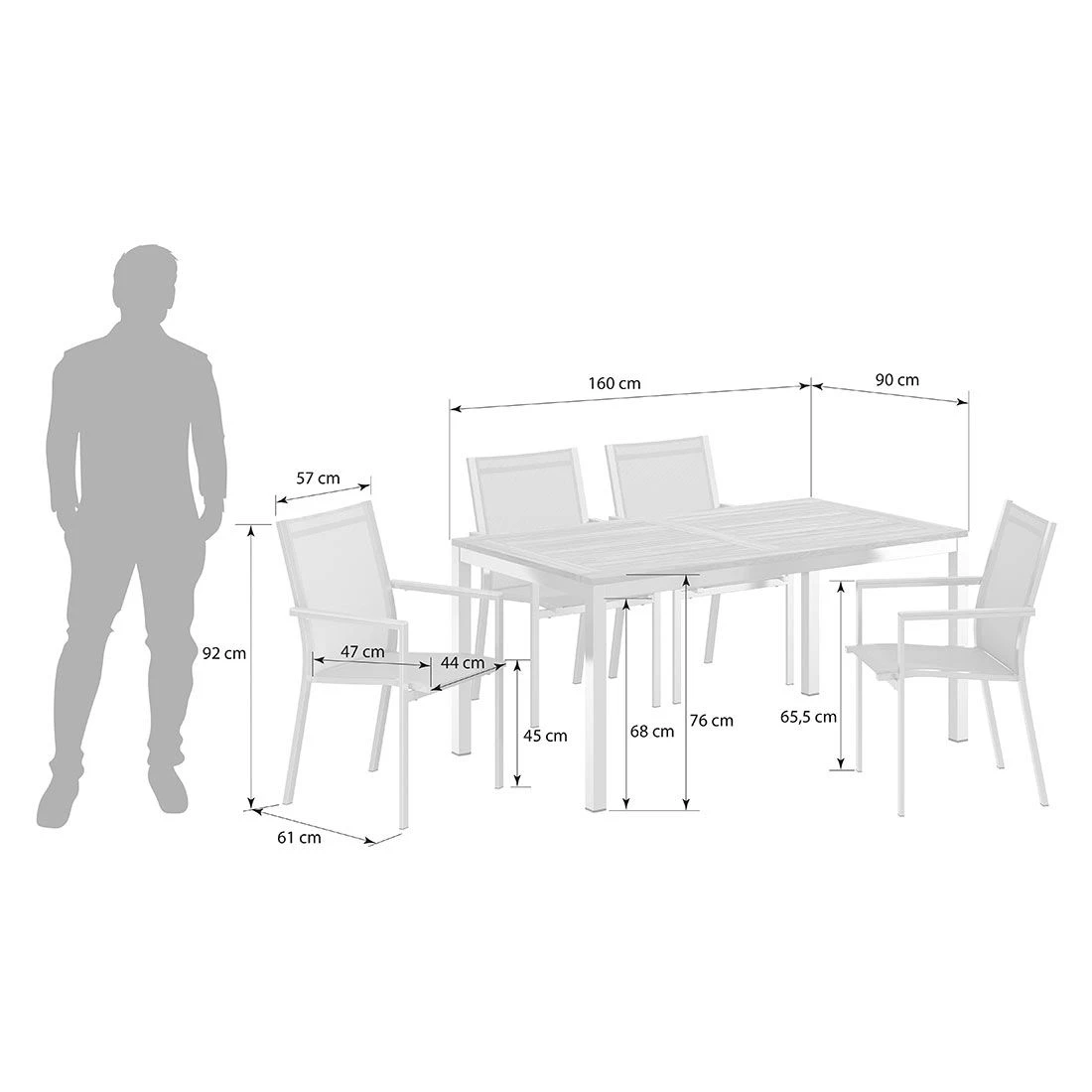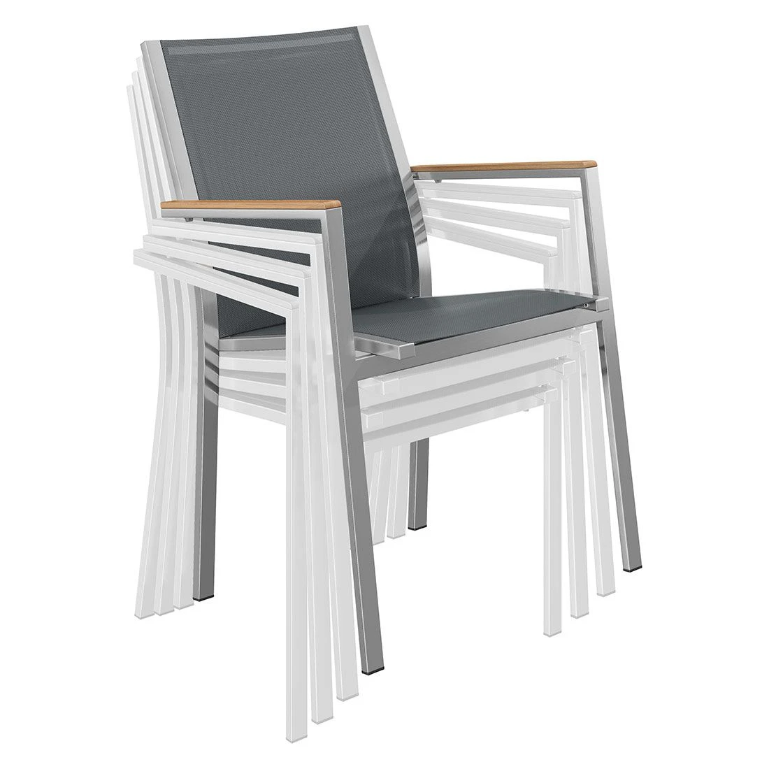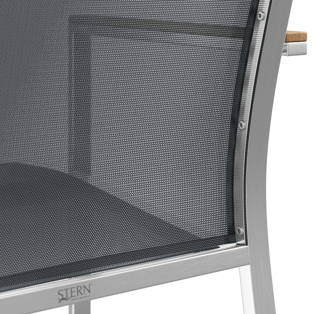 Die Gestelle sind aus Edelstahl gefertigt und sorgen somit für einen modernen Look und eine hohe Stabilität. Ein der Sitzmöbel ist die Bespannung der Sitzflächen mit Textilene. Dieses Material zeichnet sich durch eine hohe Robustheit gegenüber Hitze und Frost aus und ist leicht zu reinigen.