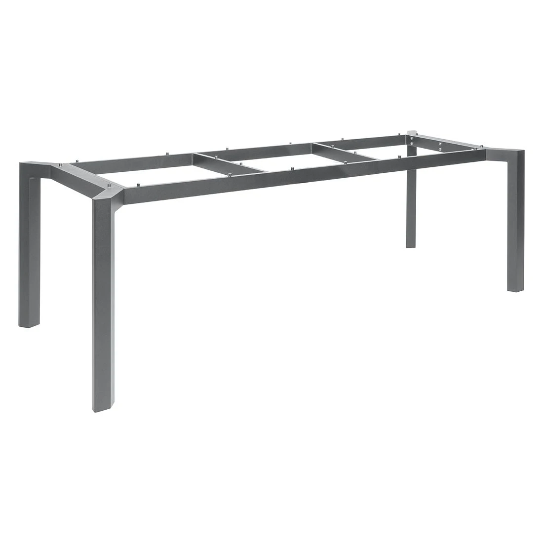 Eine Vielzahl an unterschiedlichen Gestaltungsmöglichkeiten bietet das individuell gestaltbare Tischsystem des Gartenmöbelproduzenten Stern. Das Gestell gehört zu den vielen beständigen Grundlagen für viele kompatible Platten (separat zu erwerben) des Stern-Tischsystems.