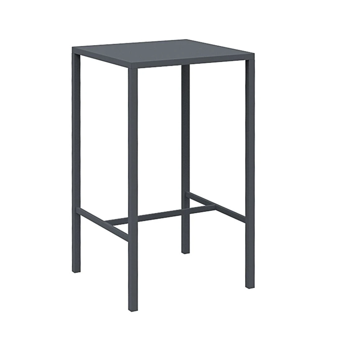 Der Stehtisch ist komplett aus Stahl (beschichtet) gefertigt und gibt so ein angenehm einheitliches Bild auf der Terrasse ab. Farblich ist die Platte in Anthrazit gehalten.