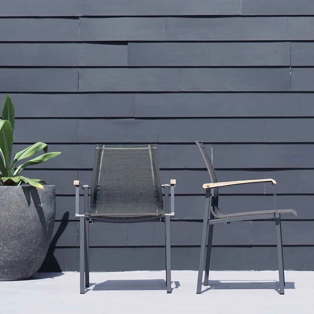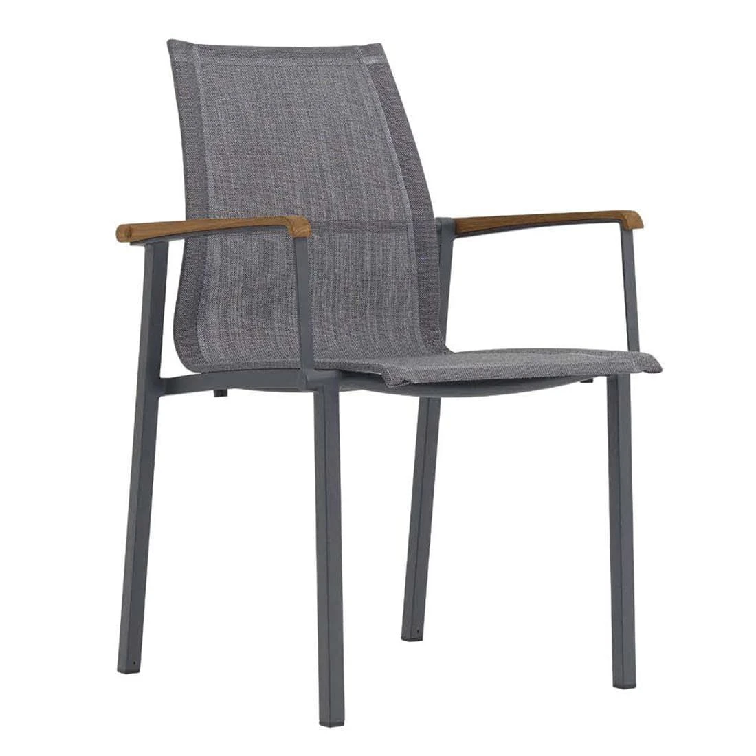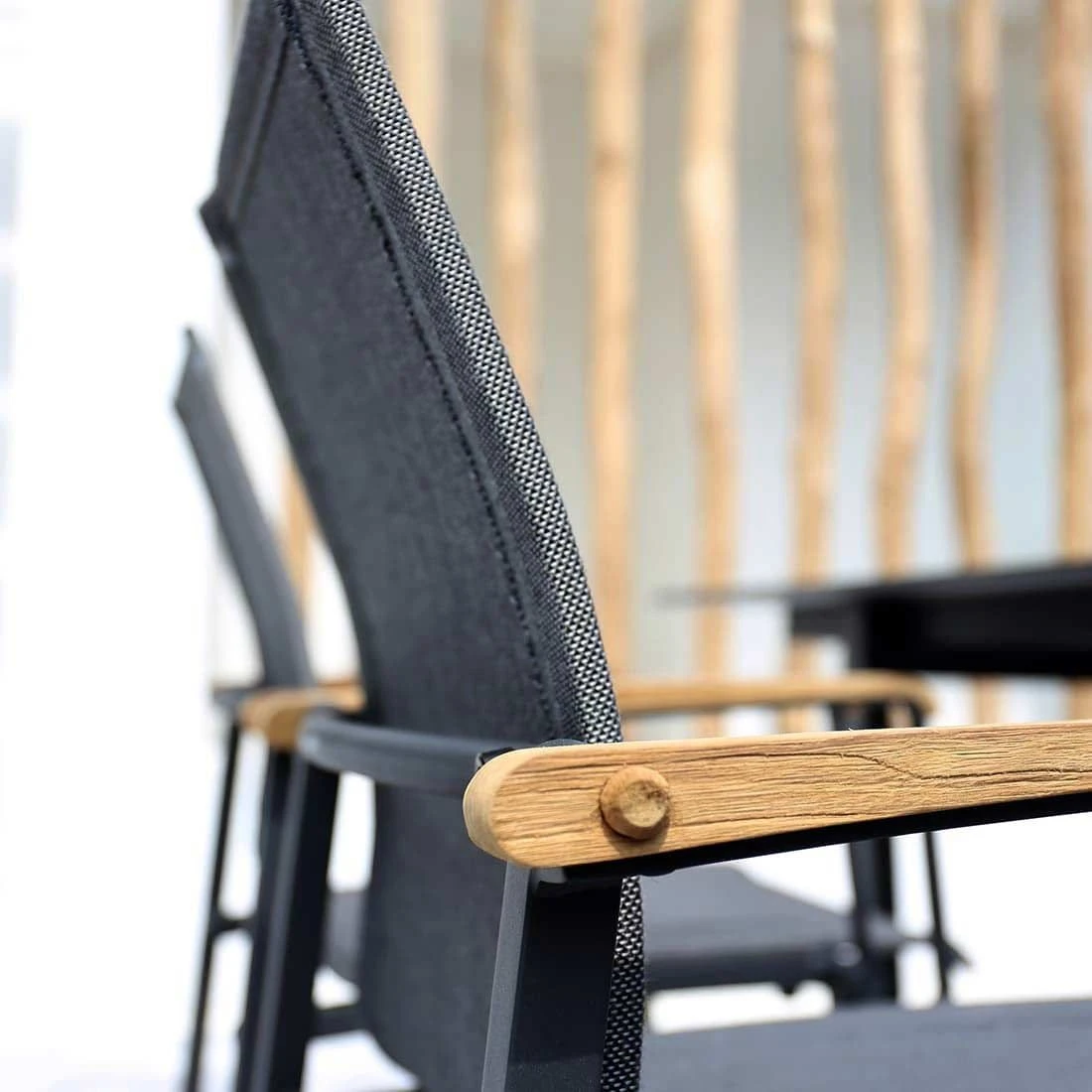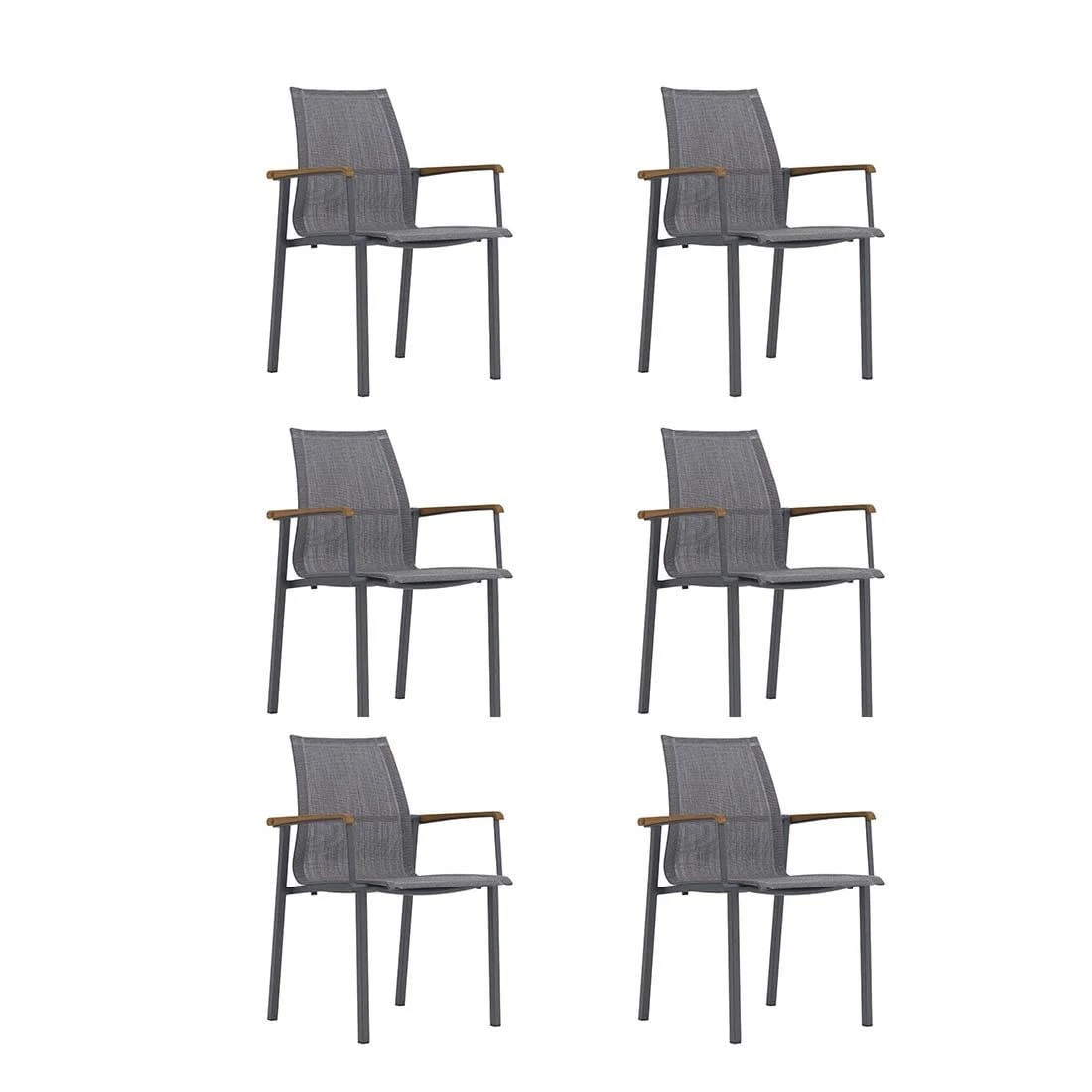 Das Gestell ist aus Aluminium gefertigt. Dadurch lassen sich die Möbel leicht von einem Standort zum nächsten transportieren und sind dennoch sehr stabil. Optisch ansprechend ist die Farbgebung der Gestelle in Graphit. Im Set enthalten ist zudem ein Tisch. Die schöne HPL-Tischplatte ist nicht nur ein optischer Hingucker, sondern besitzt zusätzlich eine sehr widerstandsfähige und unbedingt kratzfeste Oberfläche, die jeglichen Belastungen trotzt. Die Tischplatte ist Steingrau. Der moderne Look des Gartenmöbel-Sets wird durch die attraktiven Kufen nochmals betont. Die Form des Tisches ist klassisch rechteckig gestaltet.