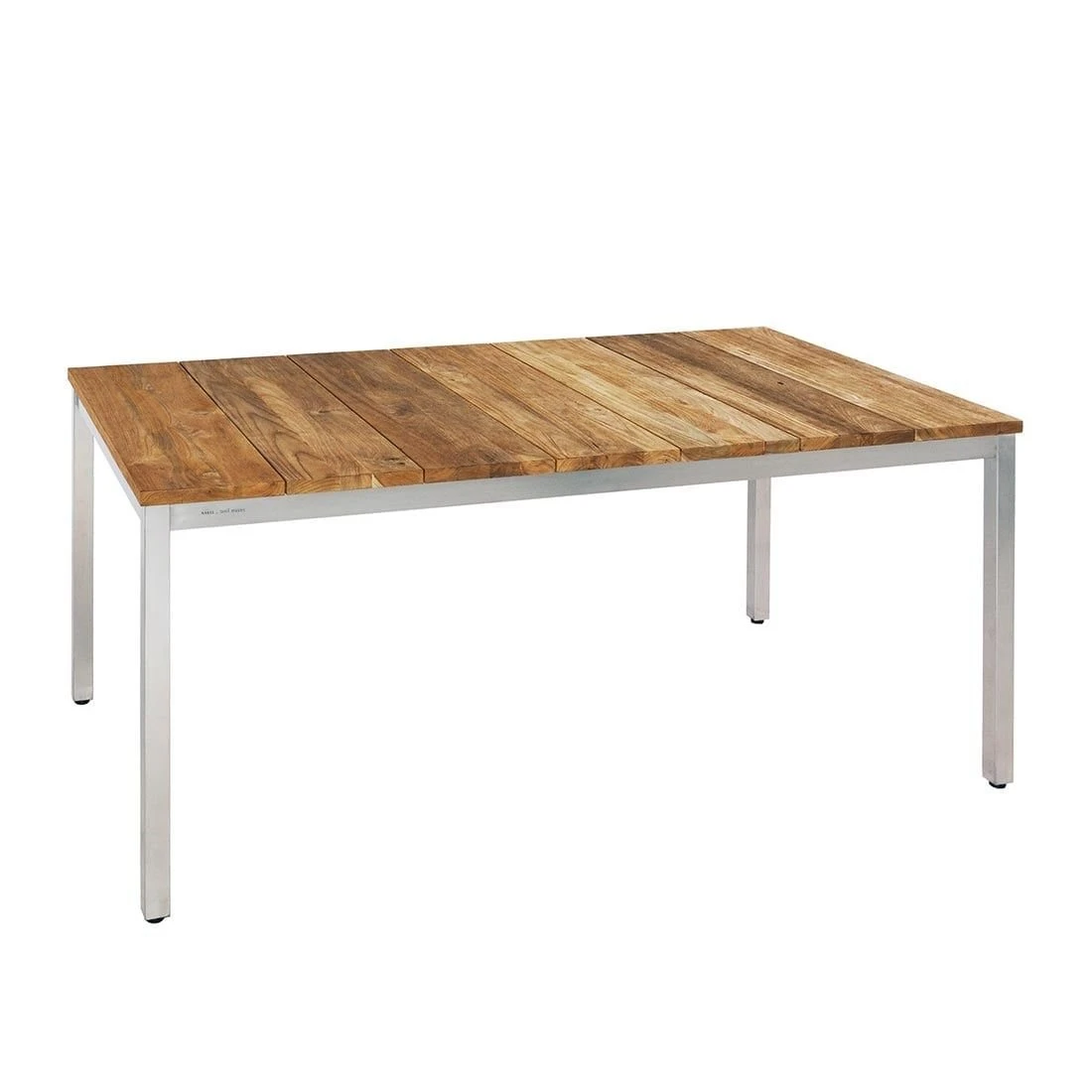 Als Gestellmaterial wird auserlesener und rostfreier Edelstahl genutzt. Klassisch aus vier Tischbeinen besteht das Gestell des Tisches. Teak ist außerordentlich widerstandsfähig gegen Witterungseinflüsse wie Schwankungen der Temperatur, Nässe und Trockenheit. Kein Wunder, dass für den Gartentisch Naxos dieses hochwertige Hartholz als Material für die Tischplatte ausgesucht wurde. Farblich ist die Tischplatte in einem schönen Teak Recycelt gehalten. Die Form des Gartentisches ist klassisch rechteckig gestaltet.