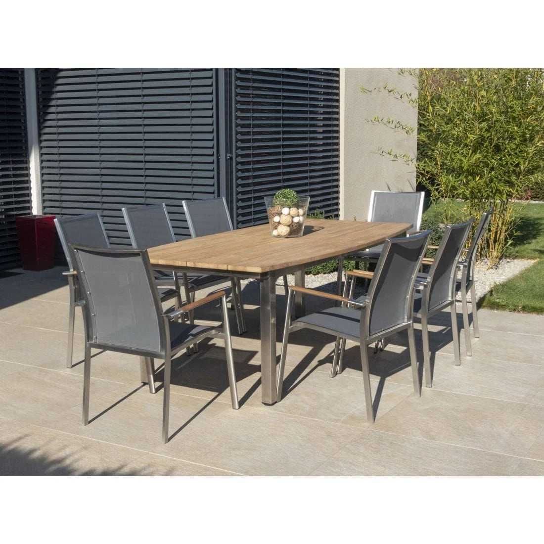 Als Gestellmaterial wird stabiler und rostfreier Edelstahl genutzt. Das klassische Vierfuß-Gestell garantiert Ihnen maximale Beinfreiheit. Als Material für die Tischplatte wird das wertvolle Hartholz Teak verwendet. Die Maserung des Holzes und der heitere Farbton integrieren sich sehr gut in jegliche Arten der Garten- und Balkongestaltung und verströmen eine einzigartig natürliche Atmosphäre. Farblich ist die Platte in Teak Sandgestrahlt gehalten. Mit der rechteckigen Form lässt sich der Ausziehtisch platzsparend in Ecken oder an Häuserwänden aufstellen.